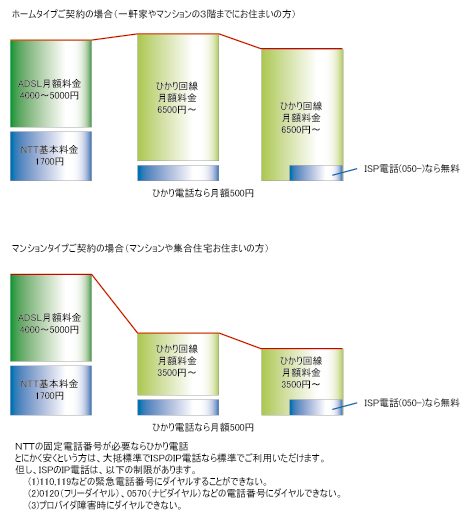 | Tepcoひかり | - | TEPCOが提供する光サービス 最大100Mbps占有型であり、近隣利用者の利用状況に影響なくスループットが維持される。 インターネット・サービス・プロバイダ (ISP)によっては、光ファイバーケーブルを使った固定電話サービス も使うことができる。 |